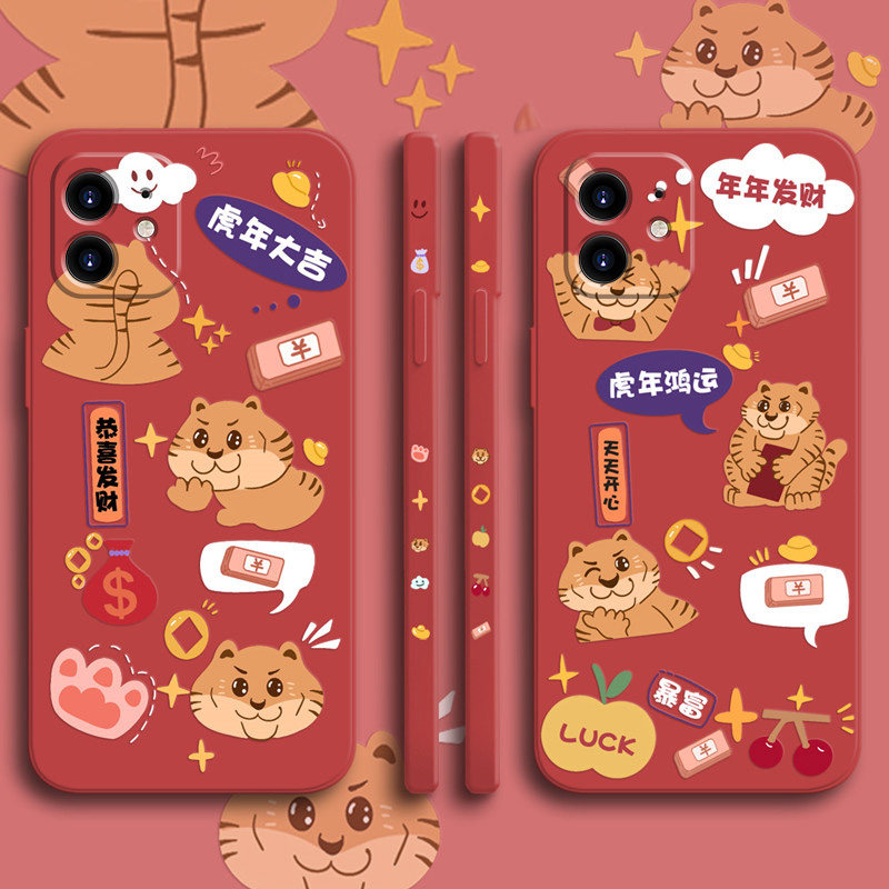 虎年新年款苹果13手机壳iPhone12promax红色苹果11软壳xs液态硅胶xr全包xsmax保护套8plus中国风7plus/se2/6s