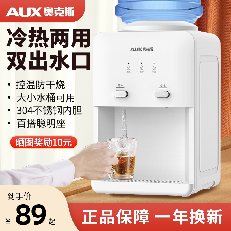 奥克斯饮水机台式小型家用迷你制冷热两用桌面矿泉水上置水桶寝室