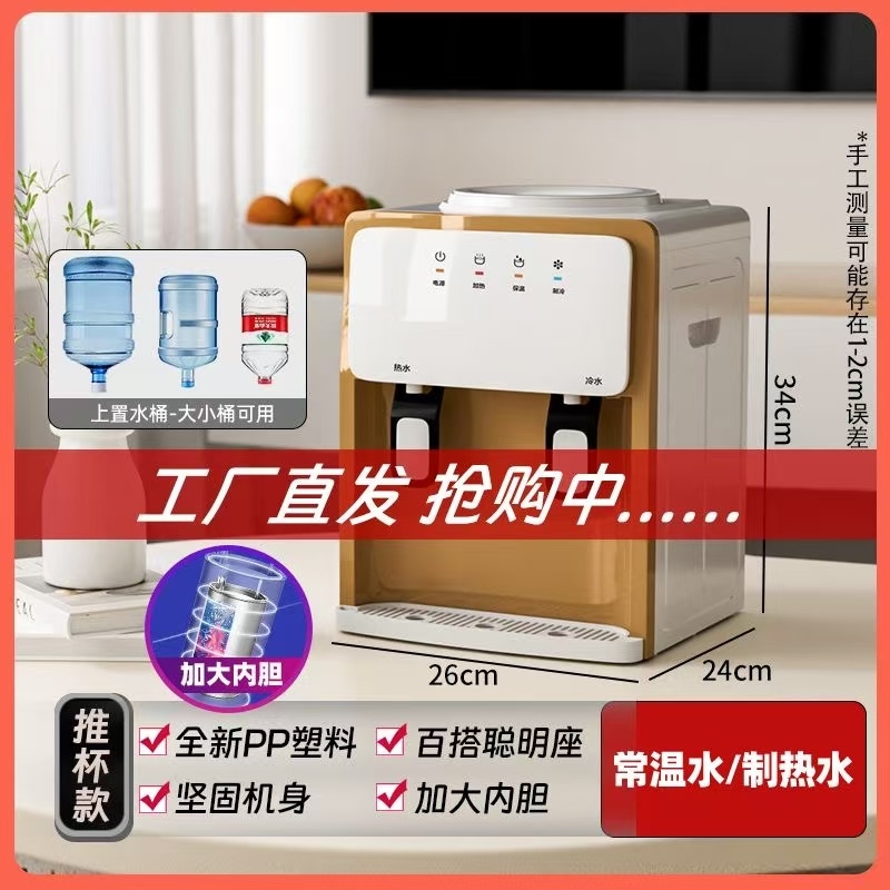 新款小型饮水机家用上置水桶台式寝室办公室冷热两用开水机全自动