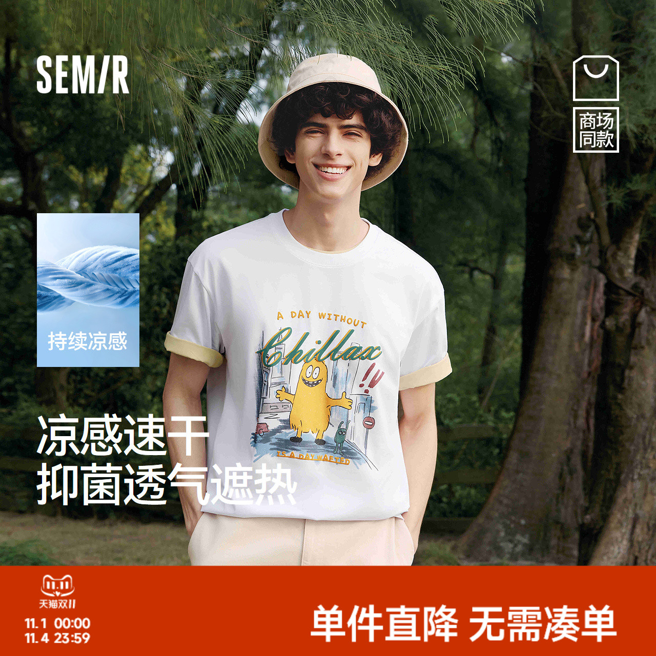 凉感T|商场同款森马短袖t恤男速干抑菌小怪兽上衣2025夏装新款潮