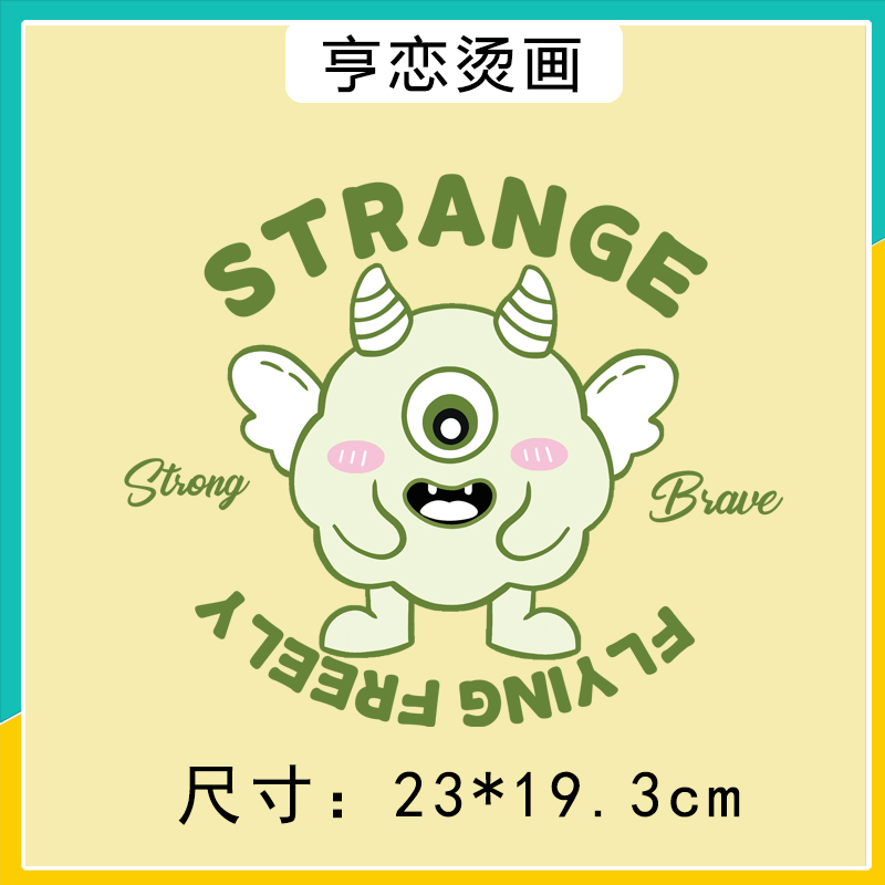 趣味可爱英文白翅膀小怪兽衣服印花装饰贴高弹白墨胶印热转印烫画