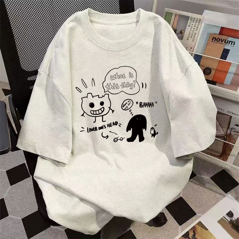 重磅纯棉美式潮牌创意小怪兽印花短袖t恤男女夏季ins百搭宽松上衣