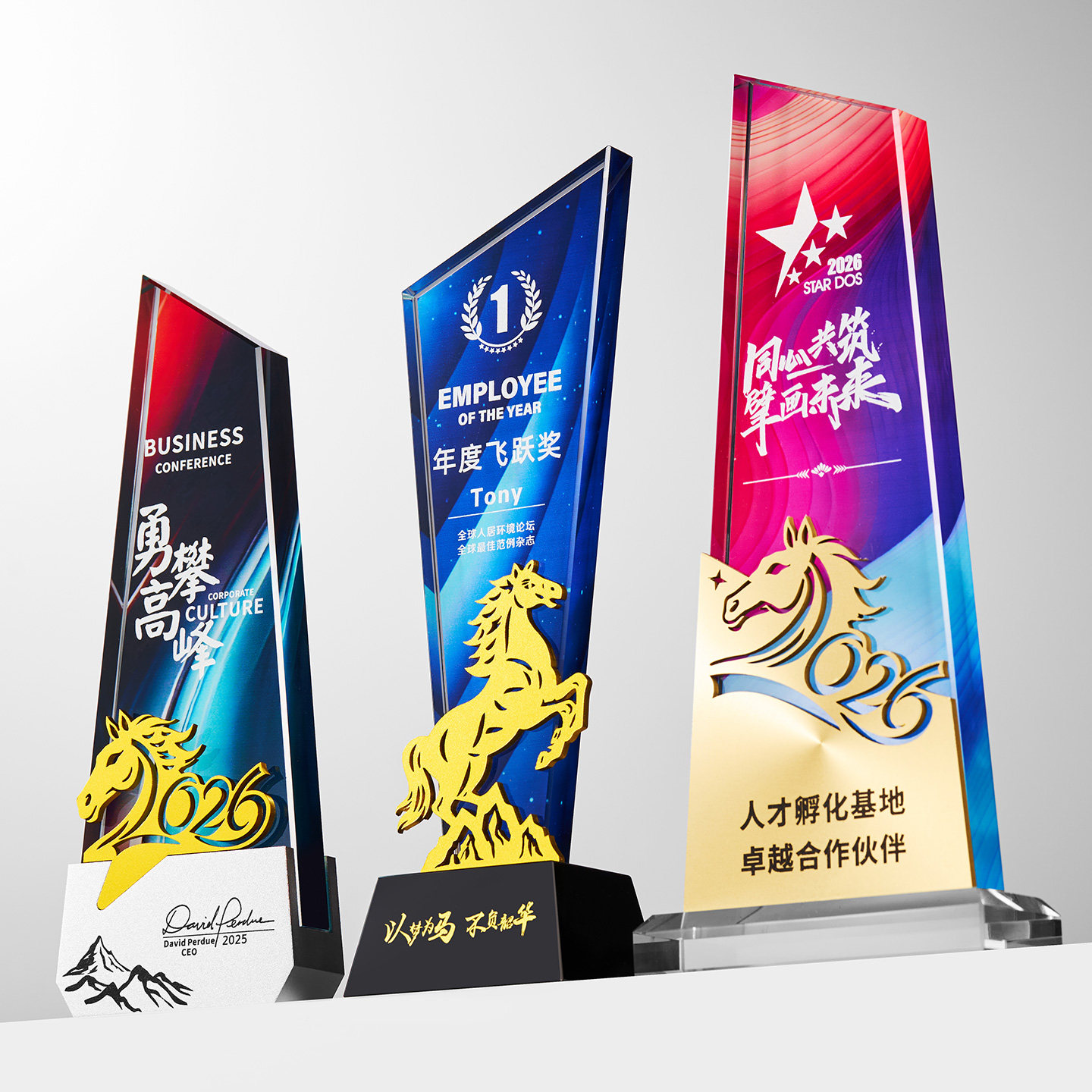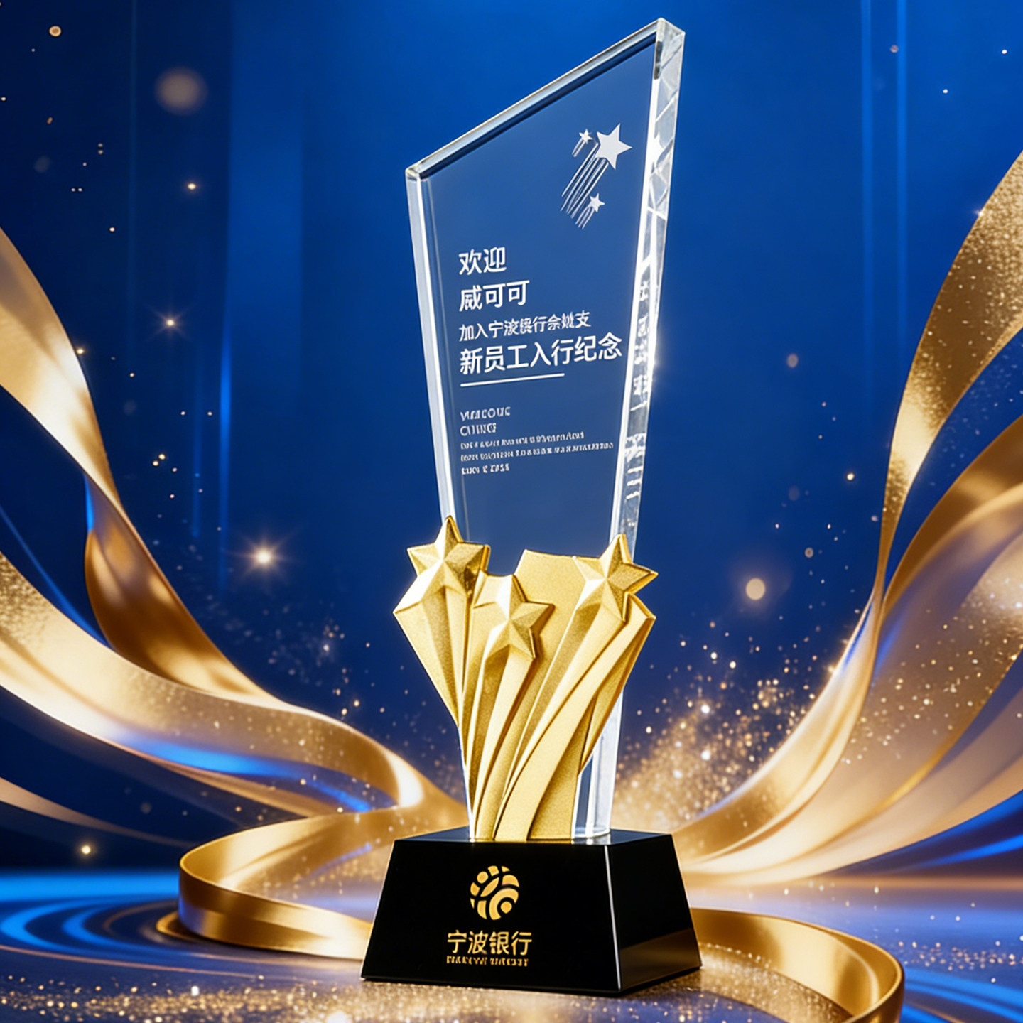 新款高档彩色水晶奖杯奖牌定制斜面板五角星年会优秀员工颁奖纪念