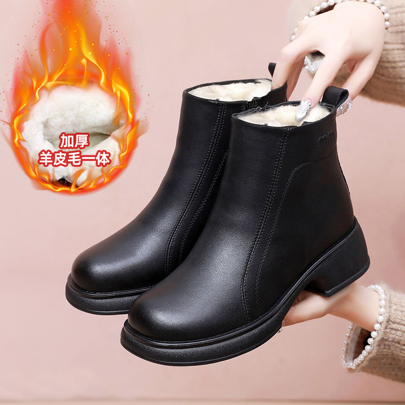 妈妈短靴女鞋棉鞋冬加绒加厚真皮羊毛靴子皮毛一体雪地靴棉靴皮鞋