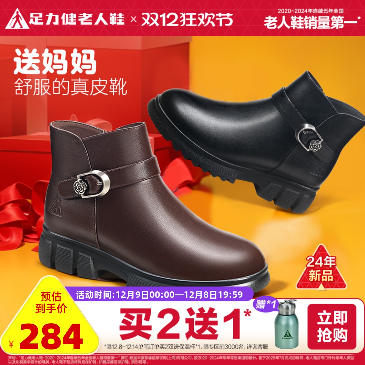 足力健旗舰店2025年冬季中年时尚女鞋妈妈短靴软底靴子真皮鞋女