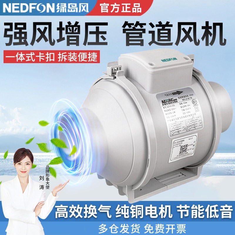 绿岛风管道抽风机强力静低音厨房气扇换气排油烟风机家用卫生间排