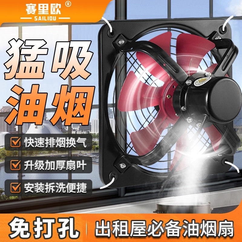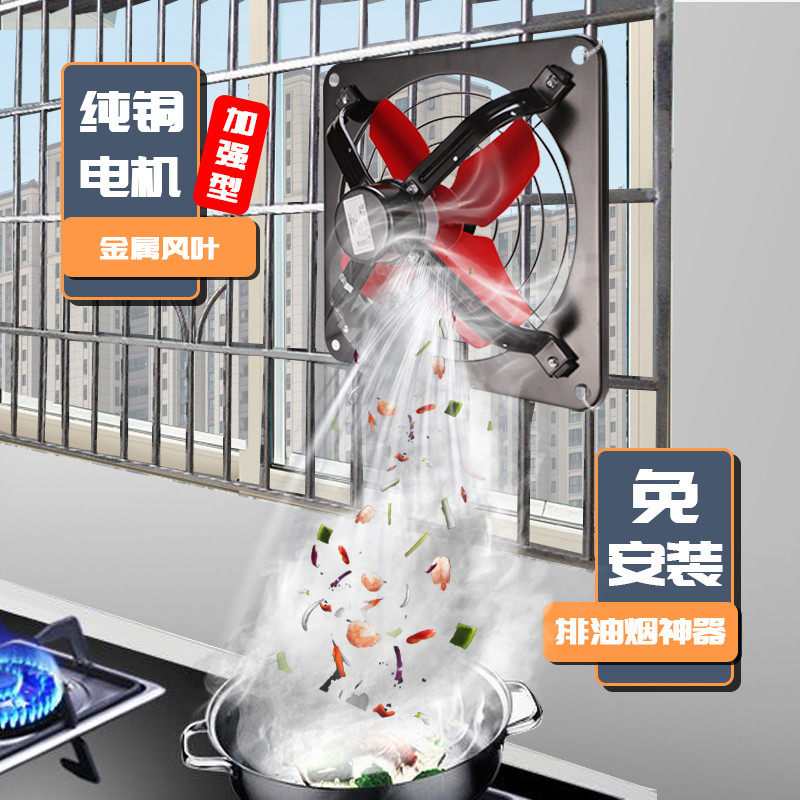 家用排气扇厨房排风扇出租房抽油烟风机窗式免打孔换气扇强力抽风
