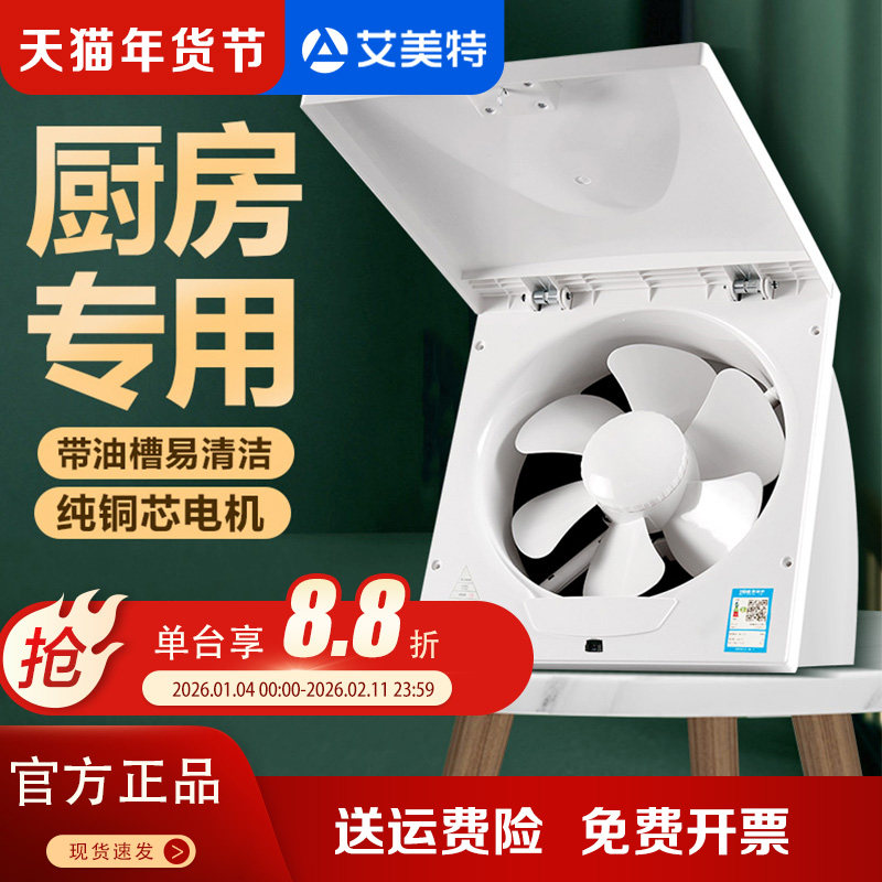 艾美特排气扇排风家用厨房抽油烟风机翻盖方形强力换气排烟通风器