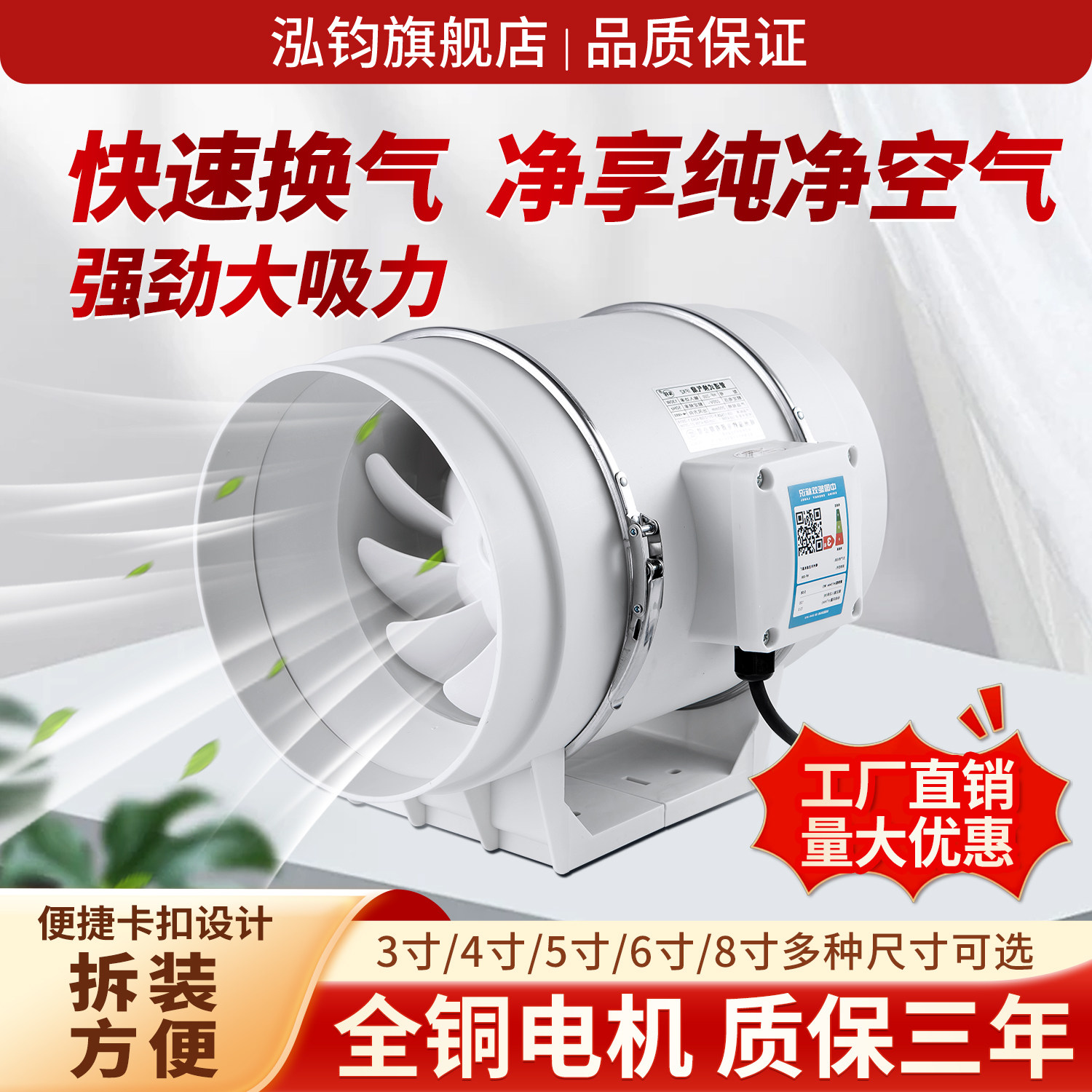 鸿洲管道机强力静音工业厨房油烟风机艾灸排风换气扇4寸6寸8寸抽