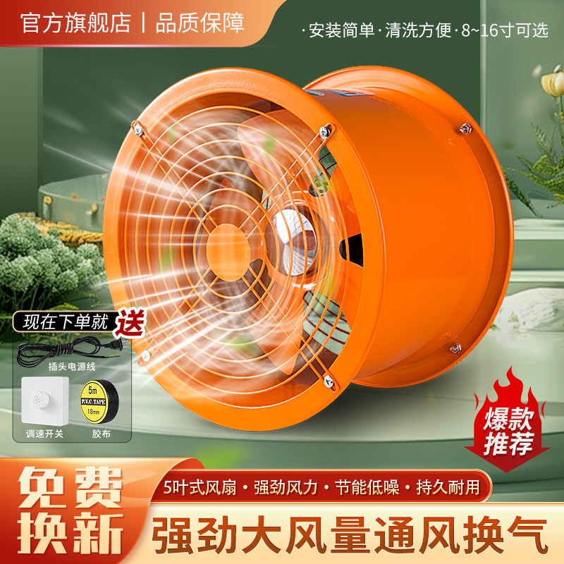 排气扇工业换气排风2800高速轴流管道壁式抽油烟风机强力圆筒厨房