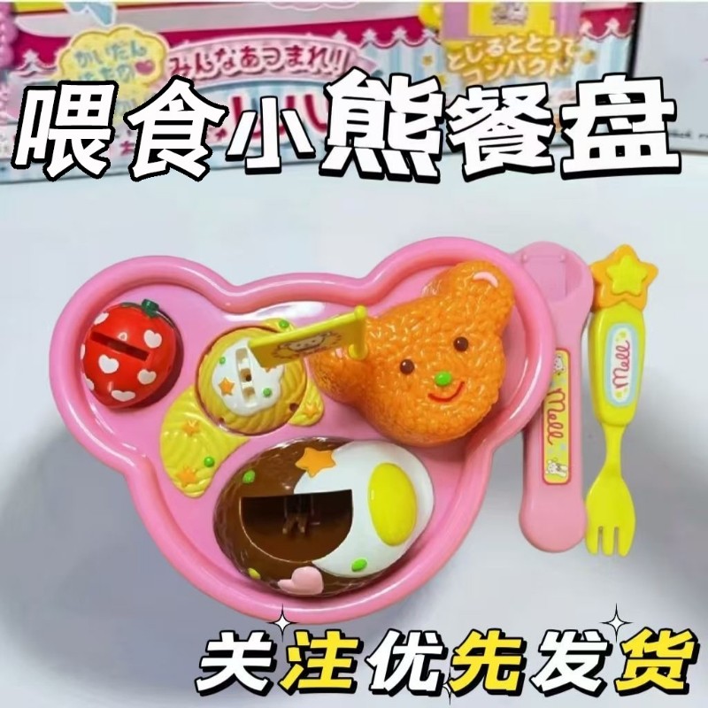 益智小熊餐盘喂食玩具便当盒食玩迷你儿童过家家玩具套装布丁拉面