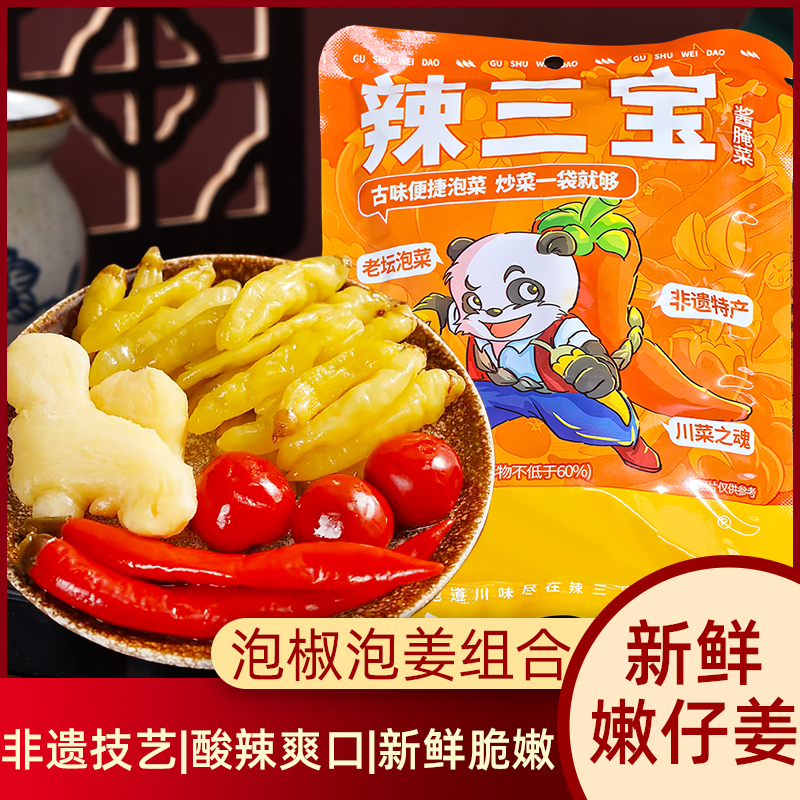古蜀泡菜辣三宝四川泡姜泡椒组合泡菜灯笼椒嫩姜小米辣椒泡酸萝卜