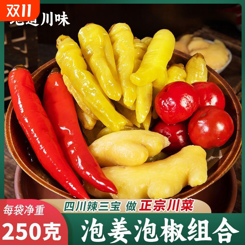 四川泡姜泡椒组合泡菜灯笼椒嫩姜泡子姜辣三宝辣椒小米辣川菜经典