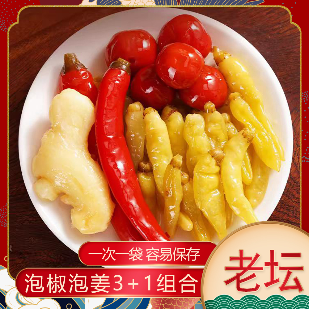 坛门泡椒三宝四川泡姜泡椒组合泡菜灯笼椒泡姜辣椒小米辣泡青小米