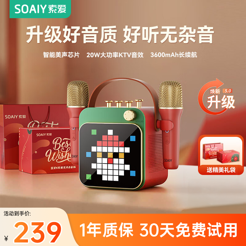 索爱K32M麦克风K歌音响话筒一体家用儿童唱歌机卡拉OK音箱家庭KTV