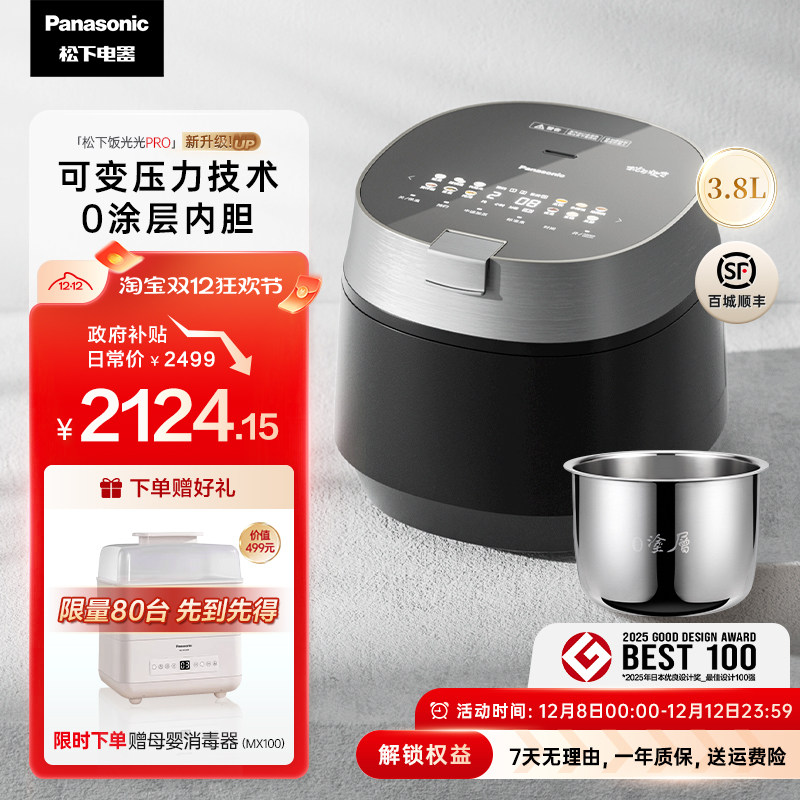 松下新品饭光光2.0多功能316不锈钢0涂层IH电饭煲家用智能电饭锅