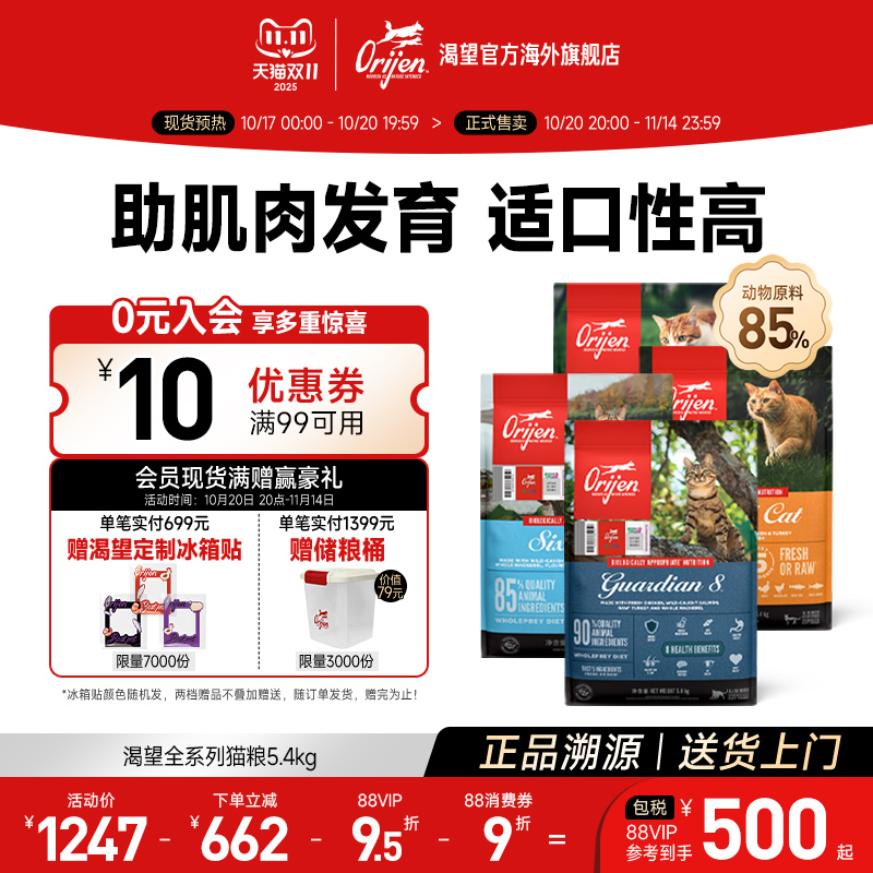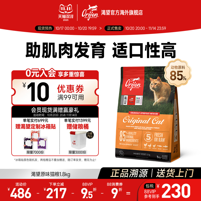 【双11抢购】Orijen渴望鸡肉猫粮进口全价成猫幼猫猫粮5.4kg
