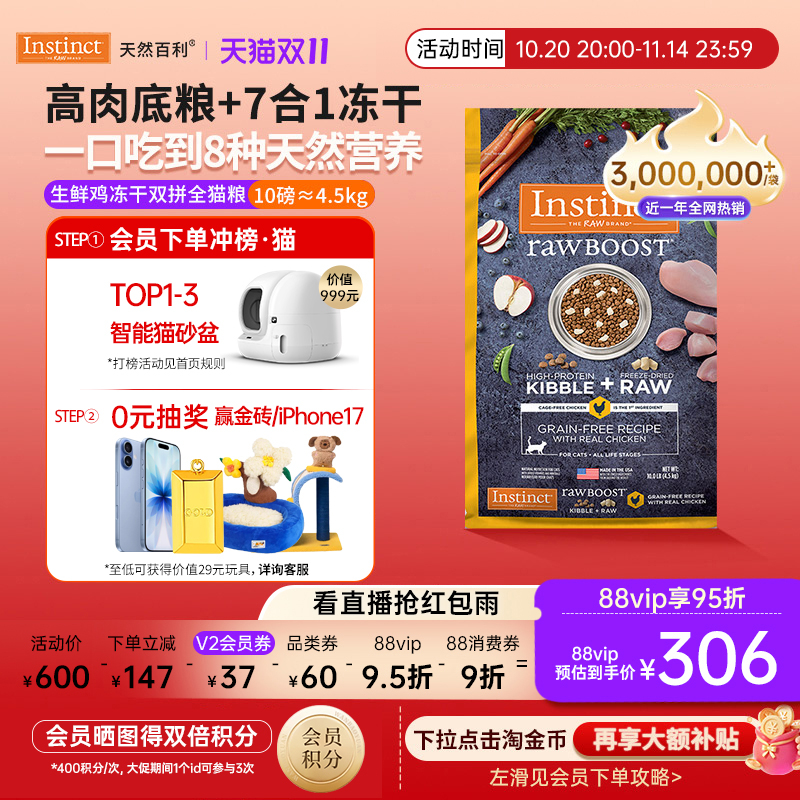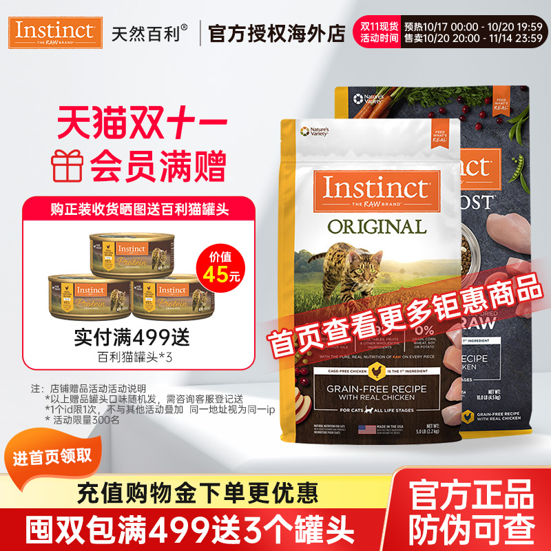 [官方旗舰店]Instinct天然百利猫粮双拼冻干生鲜鸡肉猫粮10磅