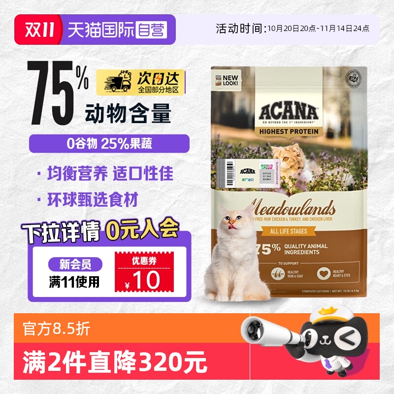 临期ACANA爱肯拿鸡肉猫粮进口无谷成幼猫全阶段牧场盛宴猫粮4.5KG