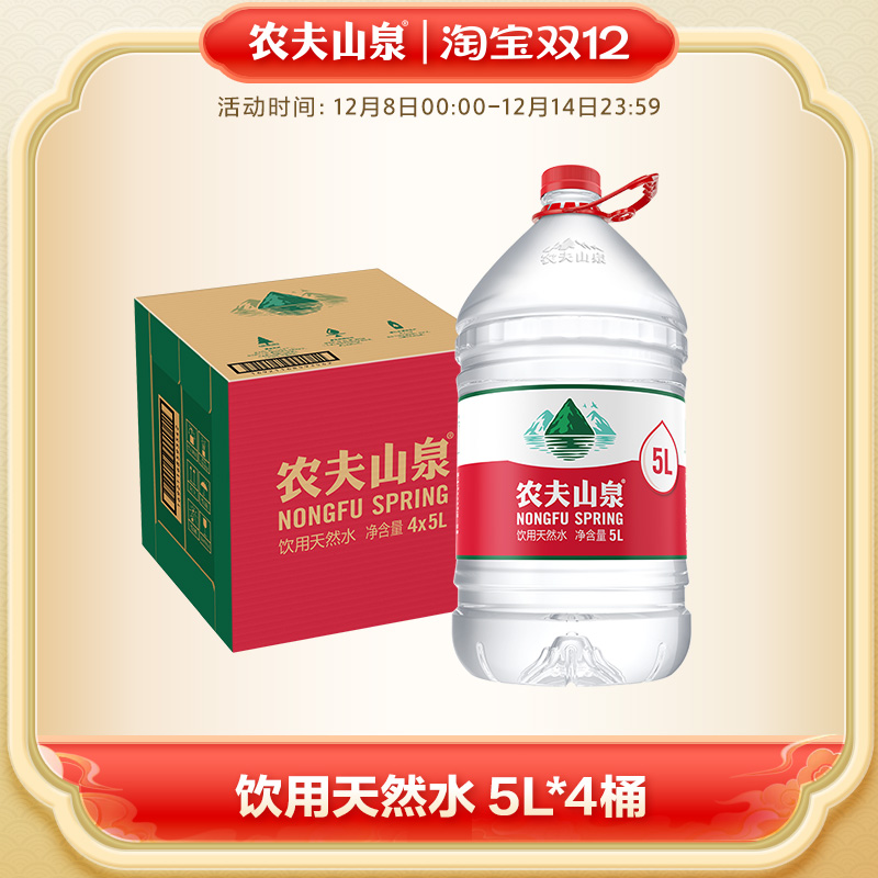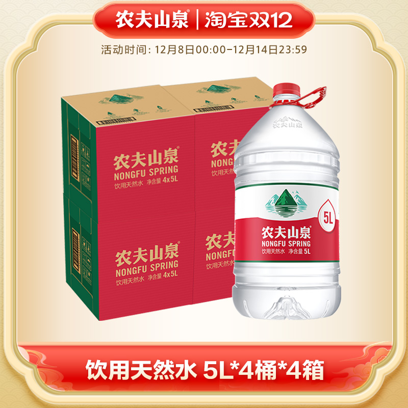 农夫山泉官方旗舰店农夫山泉饮用水天然水红盖水桶装水5L*4桶整箱