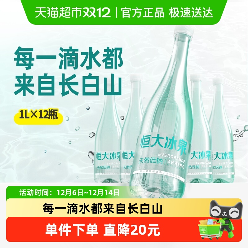 恒大冰泉天然矿泉水整箱4L*4瓶含偏硅酸饮用水大桶装泡茶煮饭