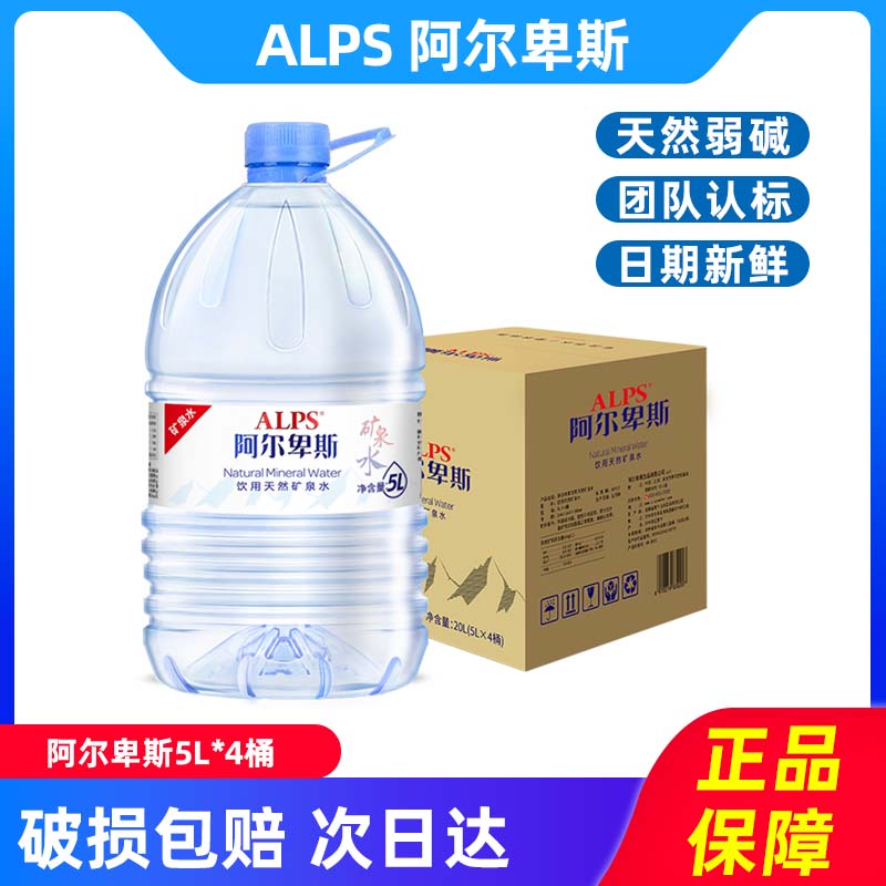 阿尔卑斯天然矿泉水5L*4桶整箱大桶家庭泡茶煲汤饮用桶装水矿泉水