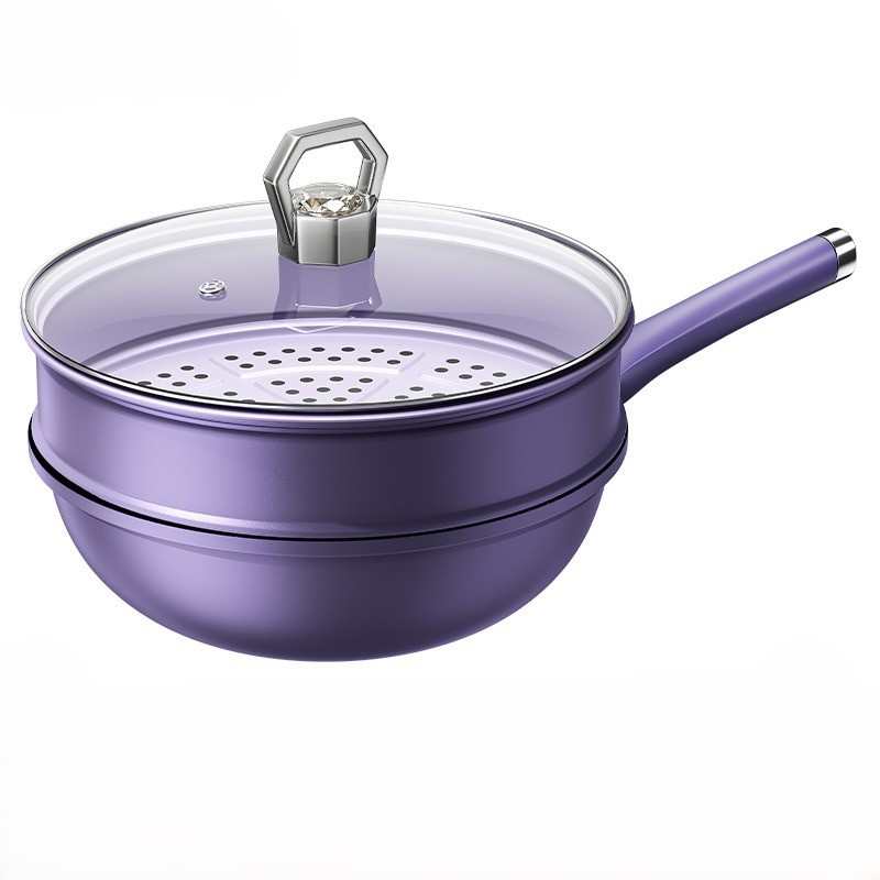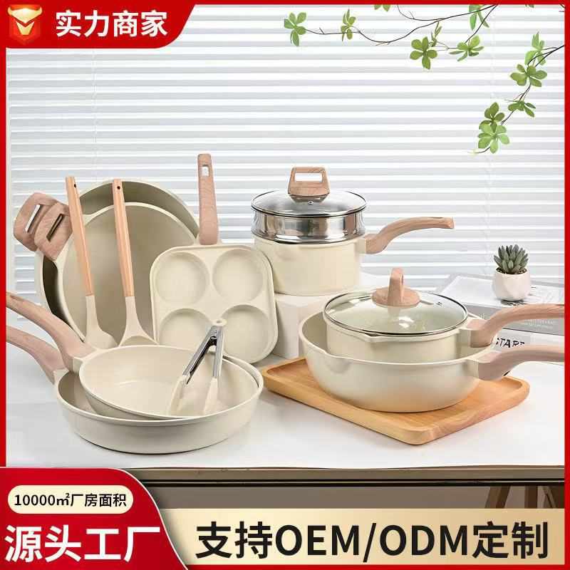 轻奢炒锅 家用炒菜锅不粘锅 麦饭石不沾锅燃气用无油烟平底锅批发