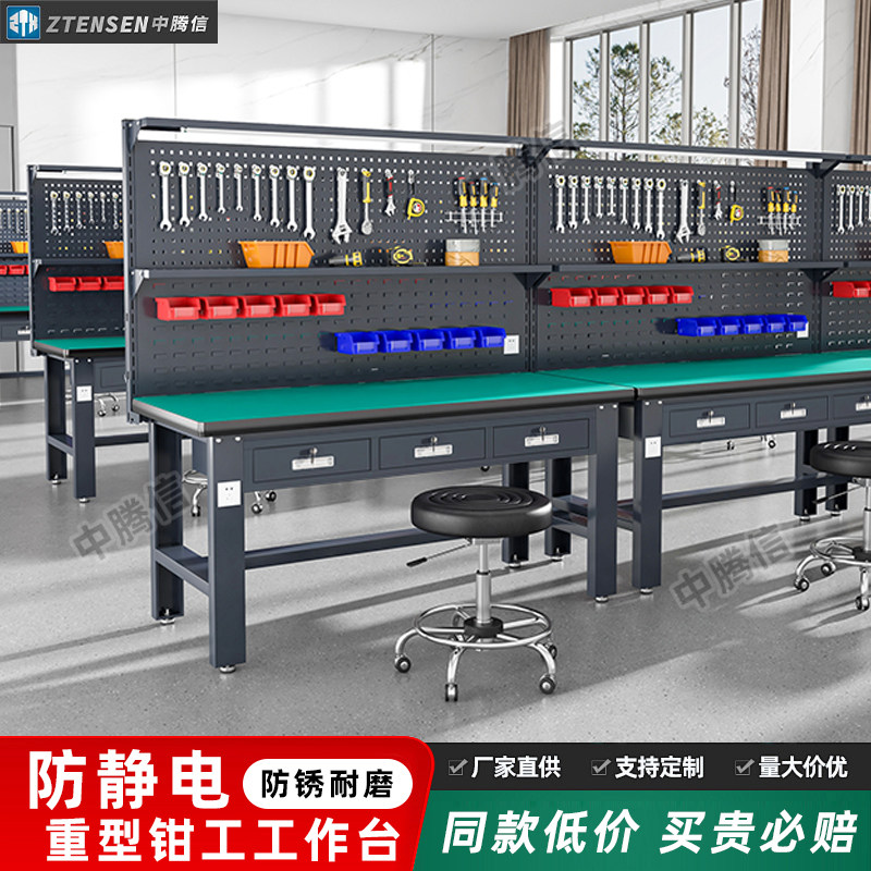 重型工作台钳工台防静电工厂车间学校实验操作台不锈钢维修工具桌