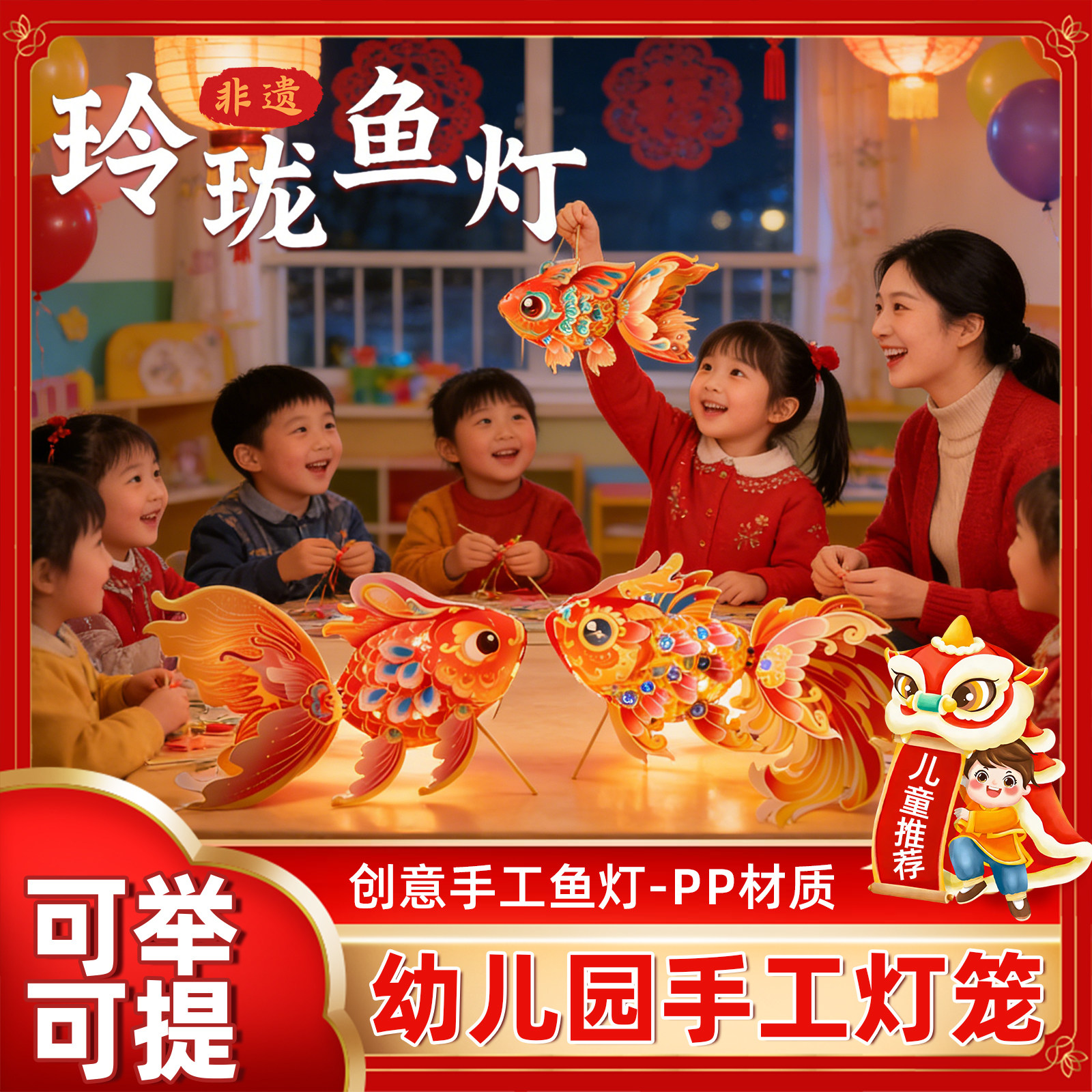 幼儿园手工灯笼玲珑鱼灯2026新款非遗灯笼新年锦鲤灯材料包拍照灯