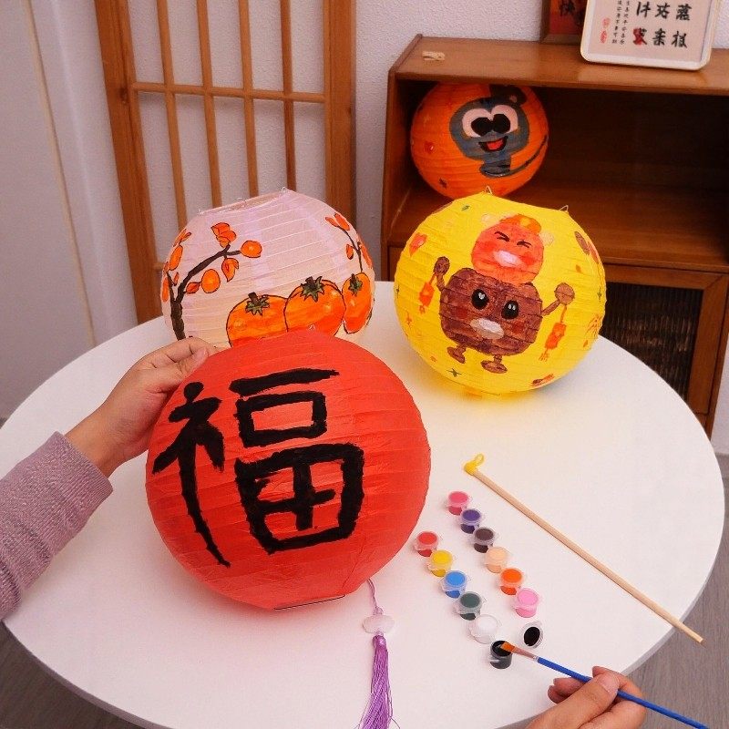 新年手工做灯笼的手工材料幼儿园手工灯笼半成品手绘灯笼元旦春节