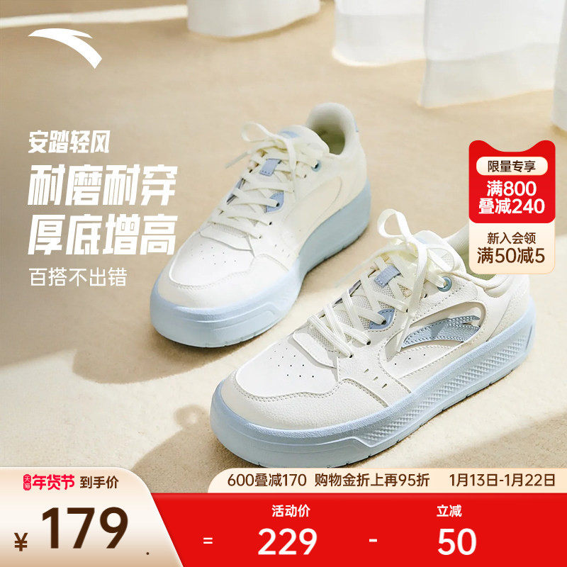 安踏轻风丨经典百搭女子板鞋增高厚底休闲鞋冬季新款小白鞋运动鞋