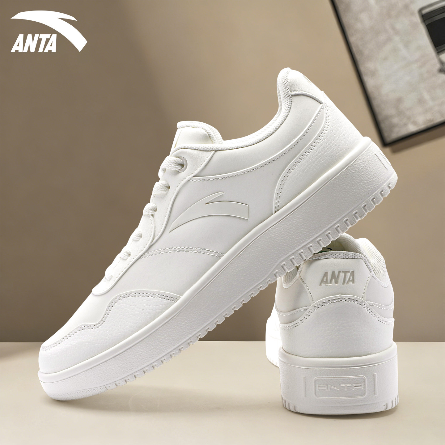 安踏小白鞋板鞋女款2026新款春季官方正品皮面纯白色休闲运动女鞋