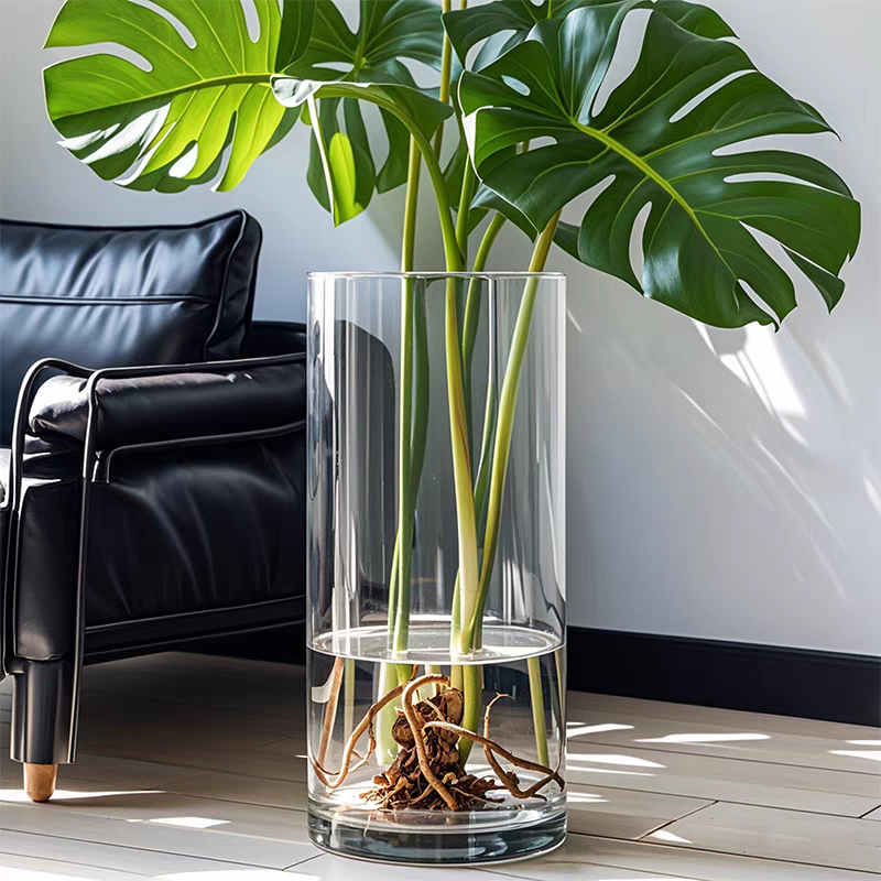 落地摆件花瓶大号玻璃富贵竹客厅富贵特大号家用鲜花透明插花直筒