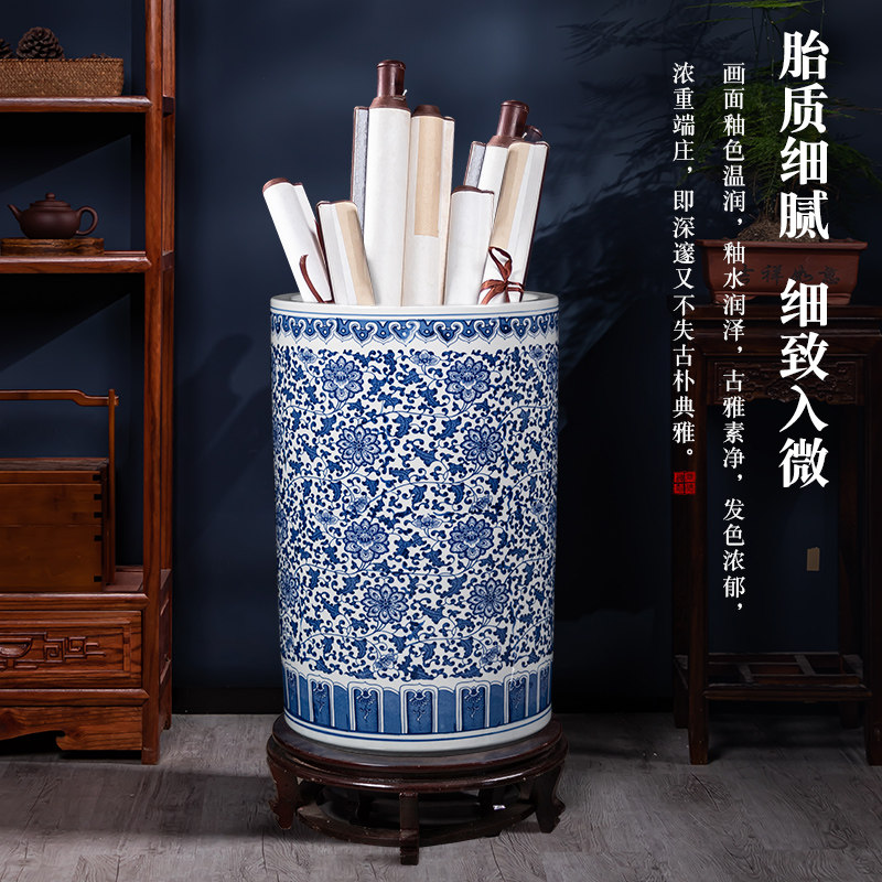 景德镇陶瓷器书画收纳缸中式字画桶卷轴缸书房客厅落地大花瓶摆件