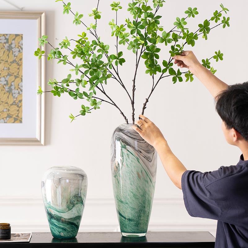 轻奢玻璃花瓶大号马醉木插花银龙柳客厅落地透明桌面摆件水养鲜花