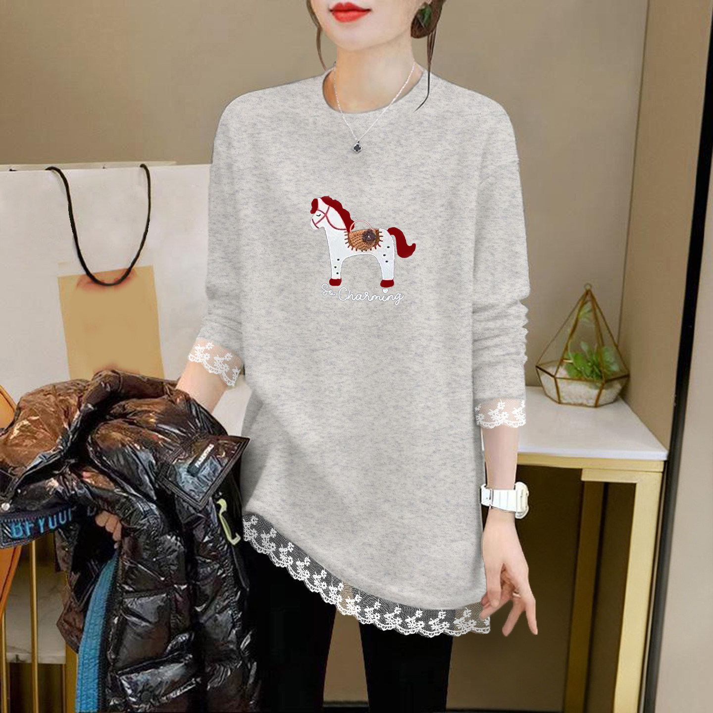 - 秋冬蕾丝衫女