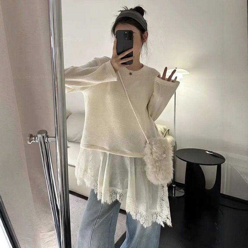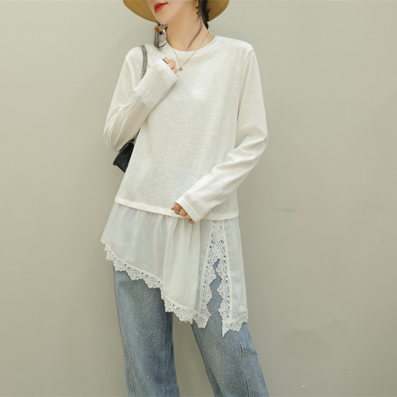 - 衫女潮蕾丝长款打底长