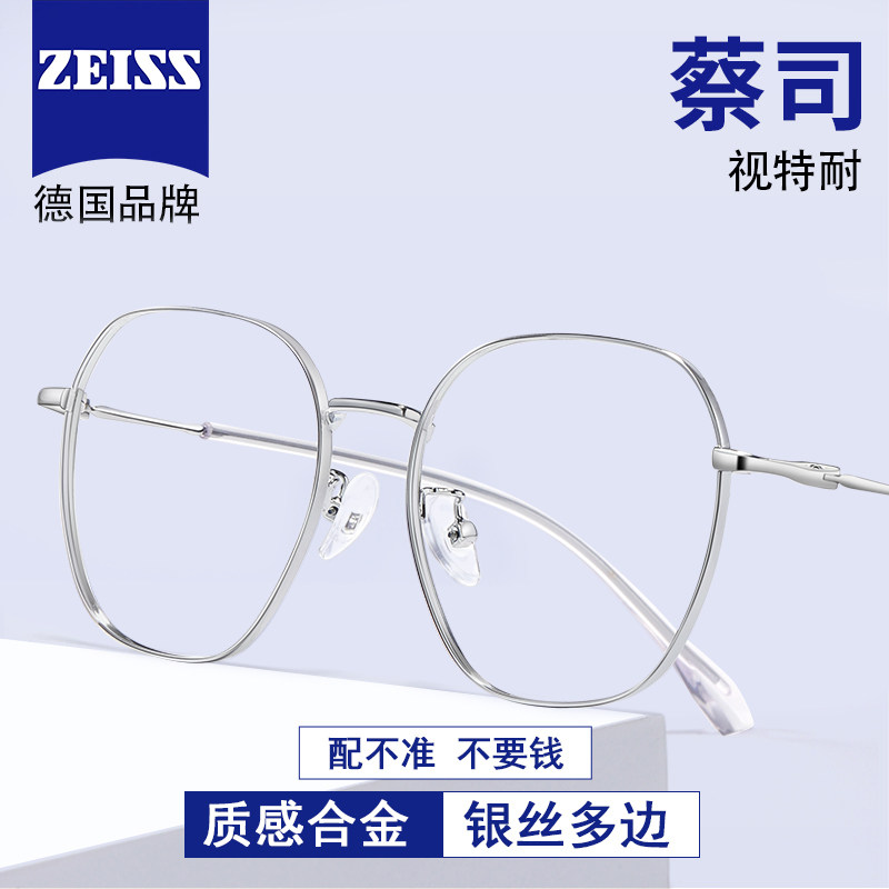德国蔡司眼镜近视男眉框散光纯钛超轻镜片定制度数可配蓝光女镜框