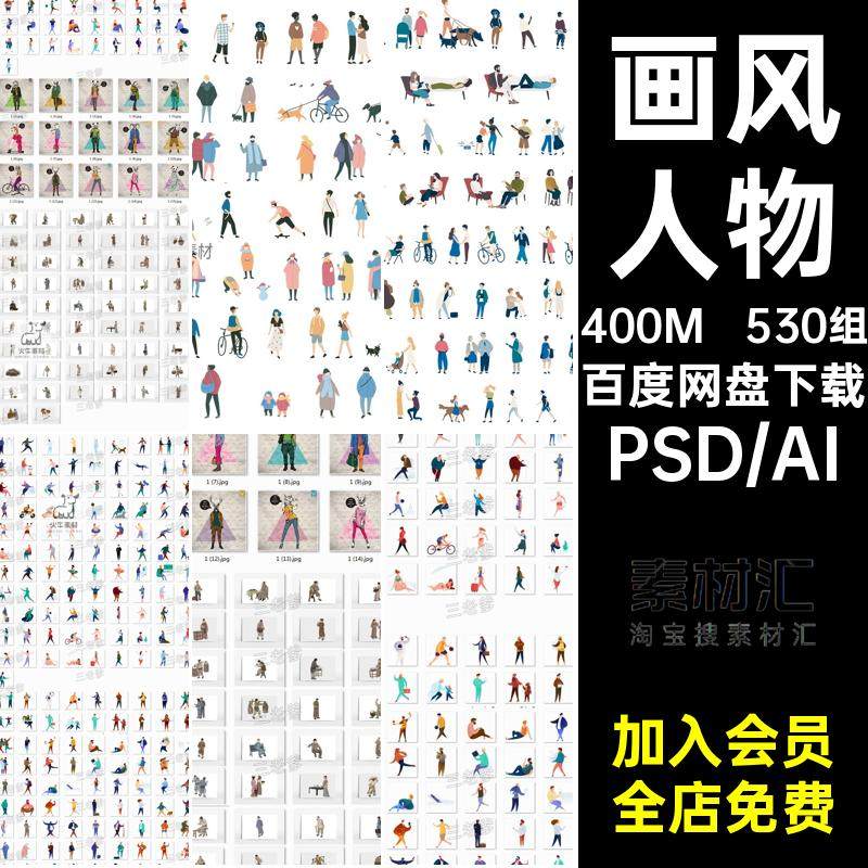 ps配景人物插画风建筑景观ai矢量室内效果图小清新后期psd素材