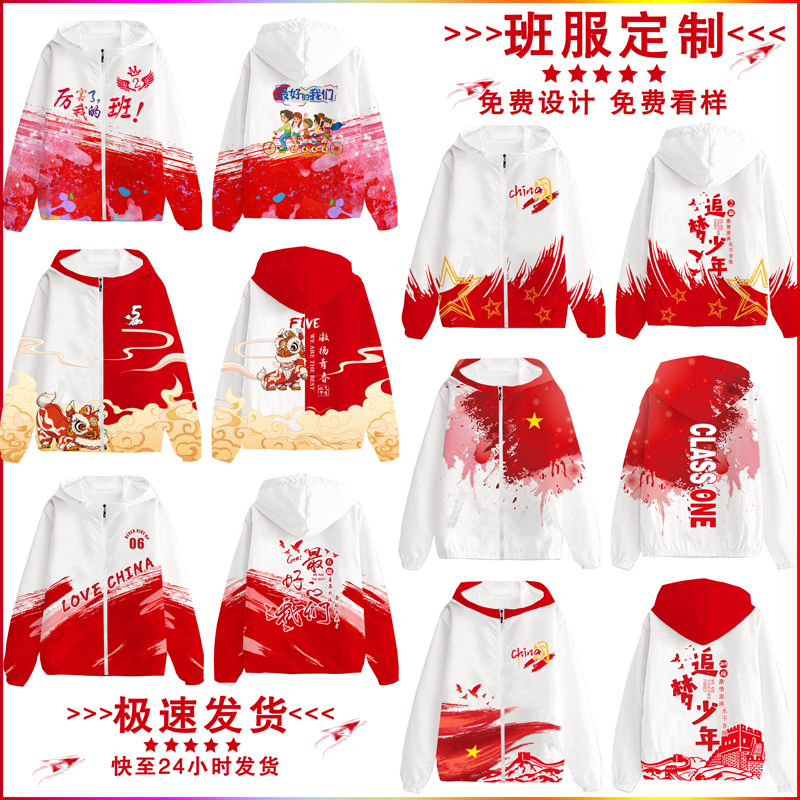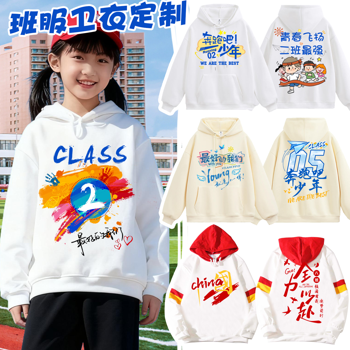 班服定制卫衣连帽外套风衣小学初高中生运动会聚会印字logo长袖