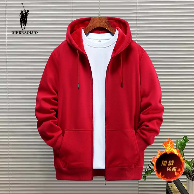 2025秋冬时尚拉链卫衣男新款潮牌宽松加绒厚纯色连帽开衫定制外套