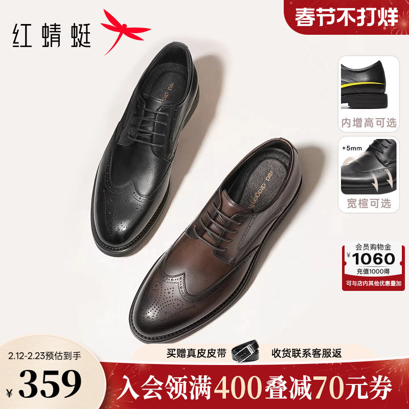 红蜻蜓男鞋商务正装皮鞋男真皮增高德比鞋子年轻人结婚新郎鞋男士