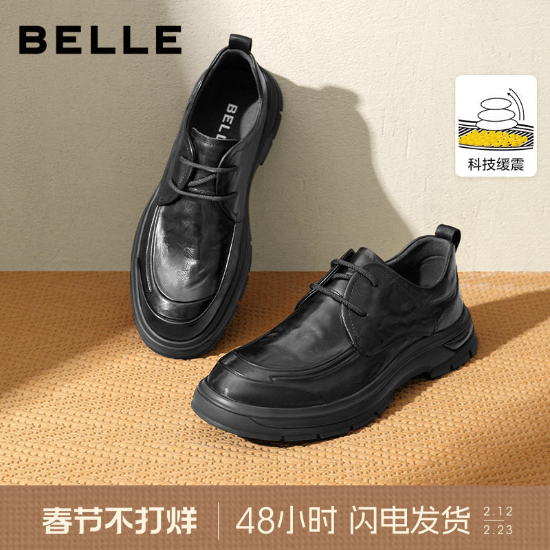 百丽男士商务软底德比皮鞋春夏季新款厚底增高休闲通勤鞋子A1422A