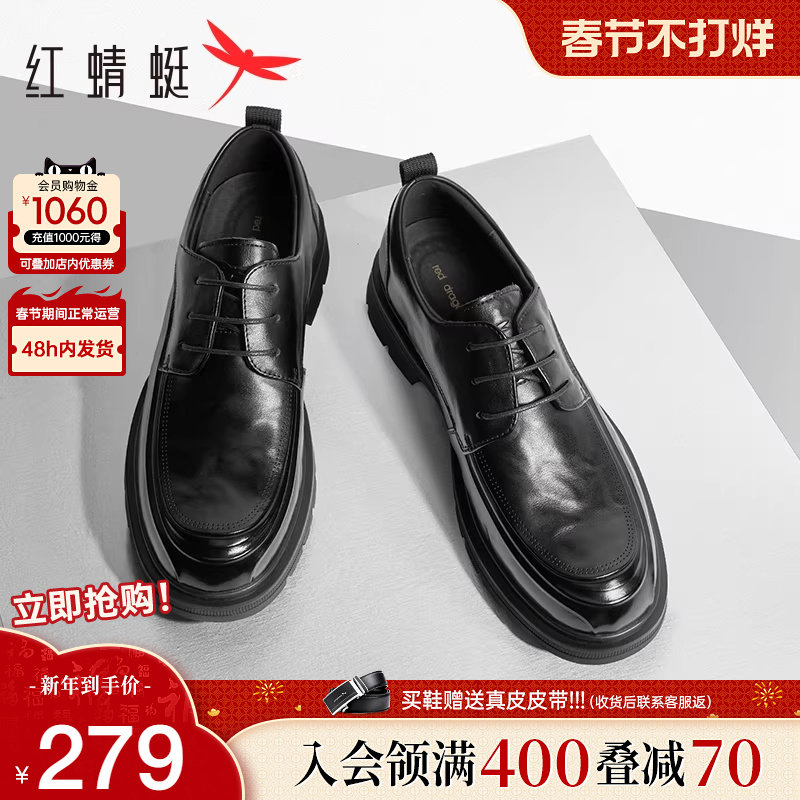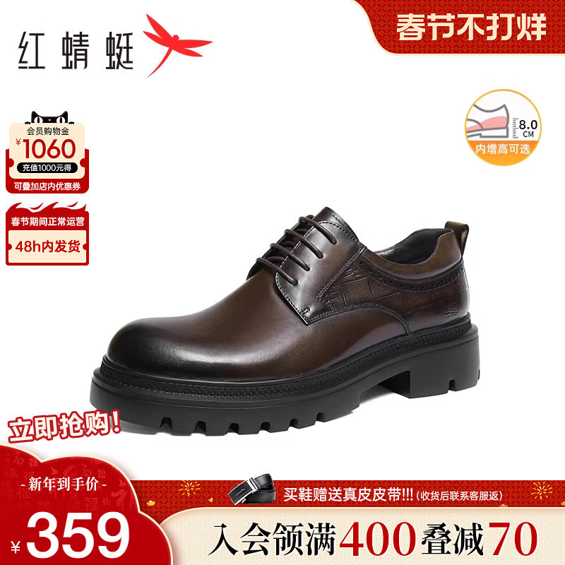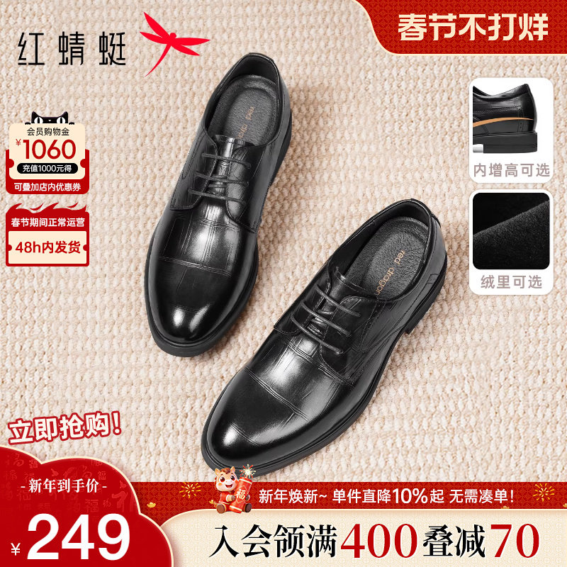 红蜻蜓正装皮鞋2025秋冬新款商务真皮男鞋厚底增高结婚新郎鞋男士