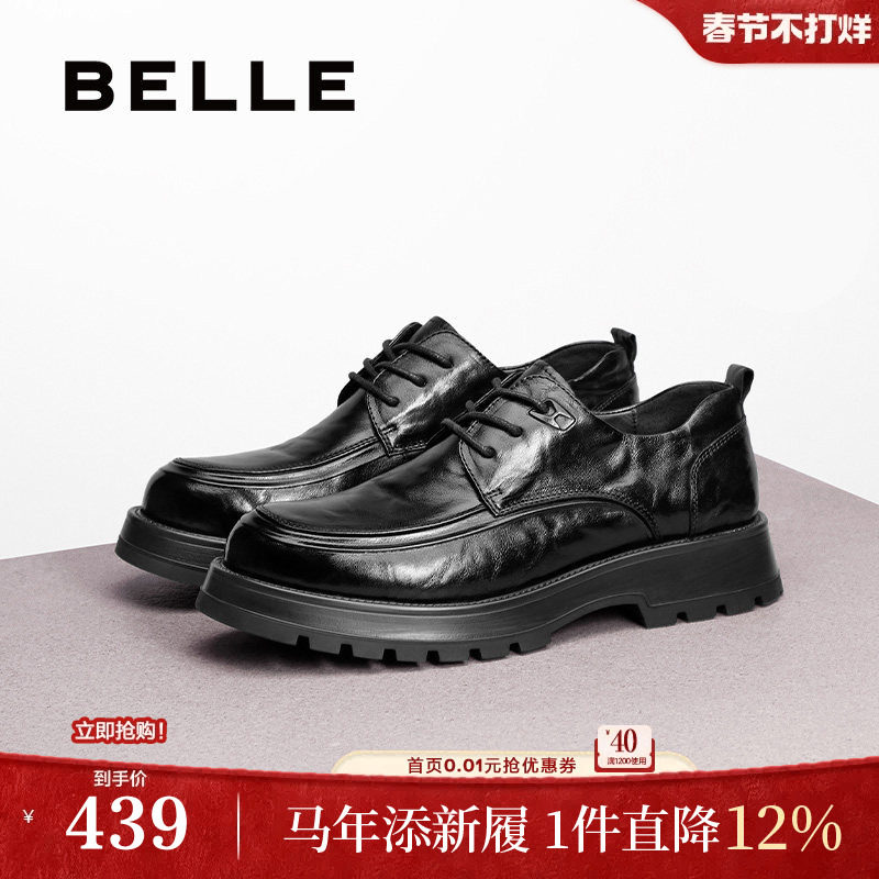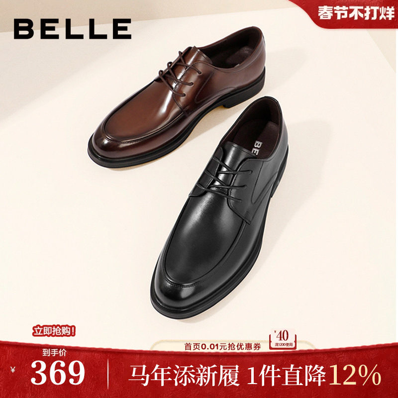 百丽男士商务正装真皮鞋男春季新款增高休闲德比新郎婚鞋B3GK3CM1