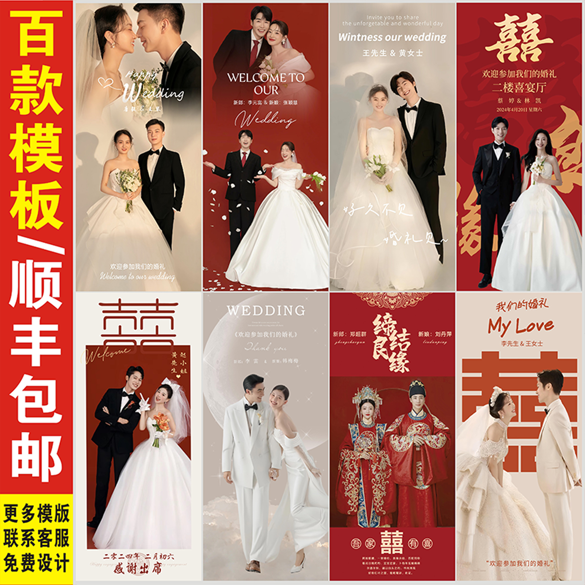 结婚海报背景墙婚礼喷绘布定制婚纱照片迎宾海报背景板布置装饰图