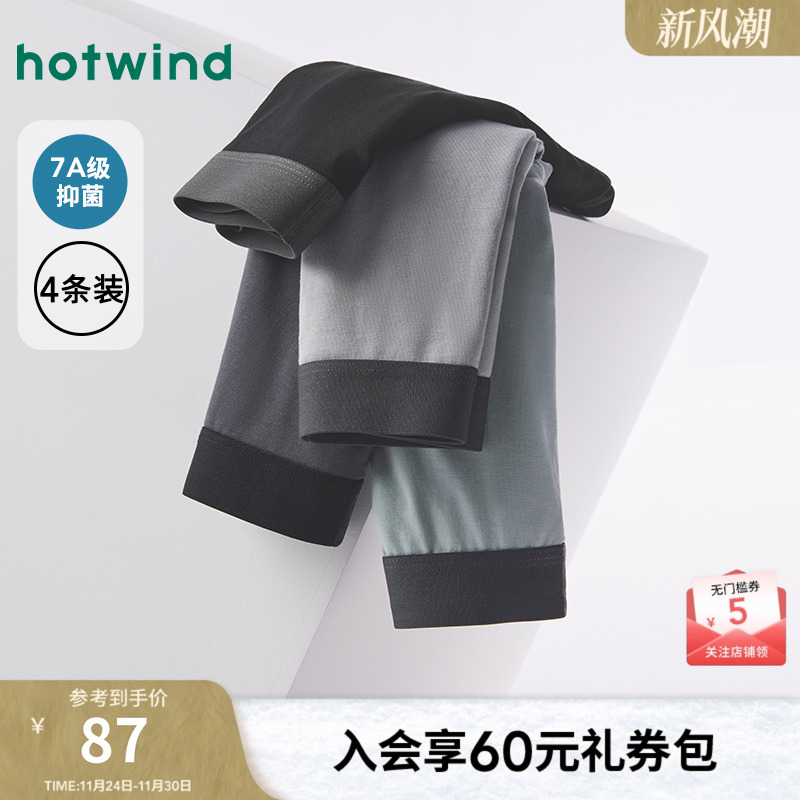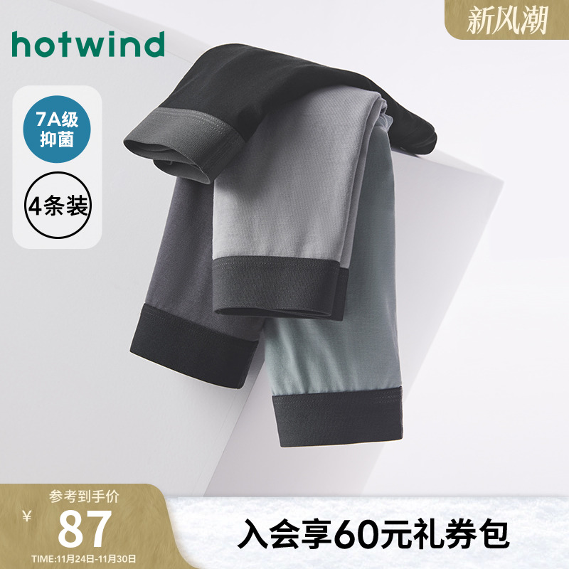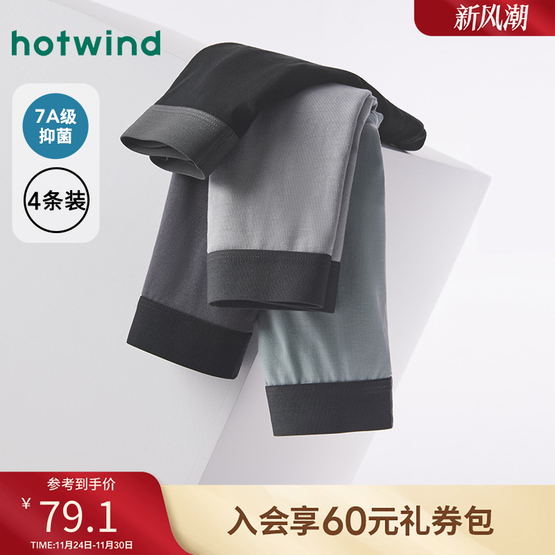 组合装内裤热风男士素色棉氨4条装内裤舒适透气平角短裤男士内衣