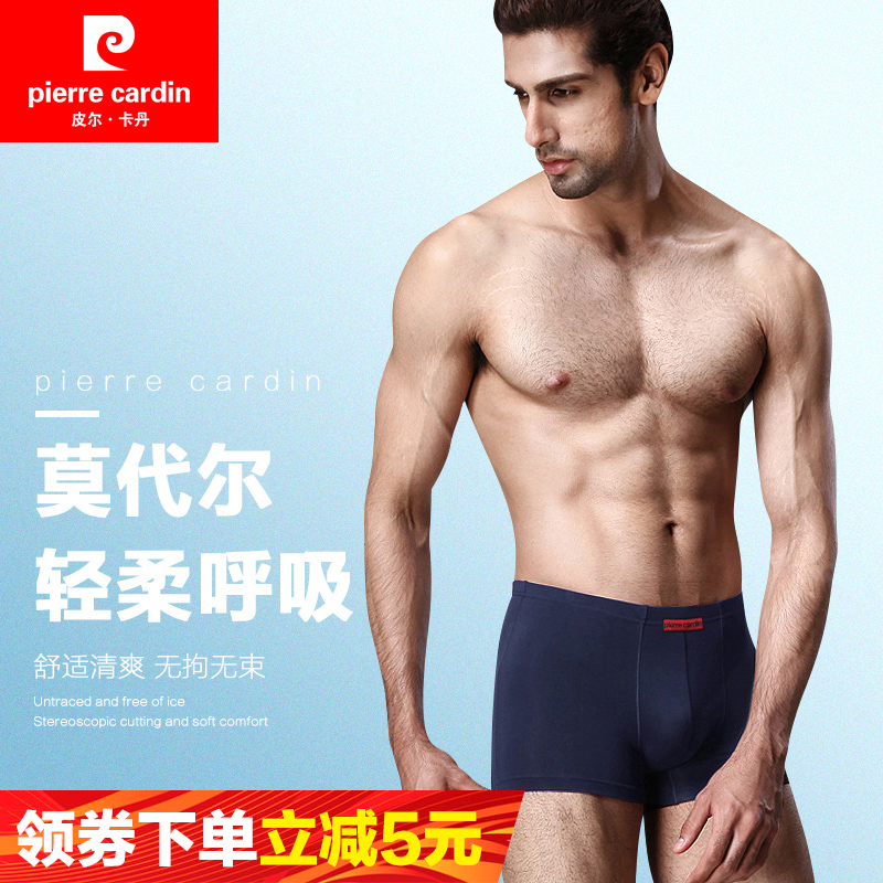 皮尔卡丹内裤男士内衣春秋薄款莫代尔平角内裤弹力窄边宽松53741