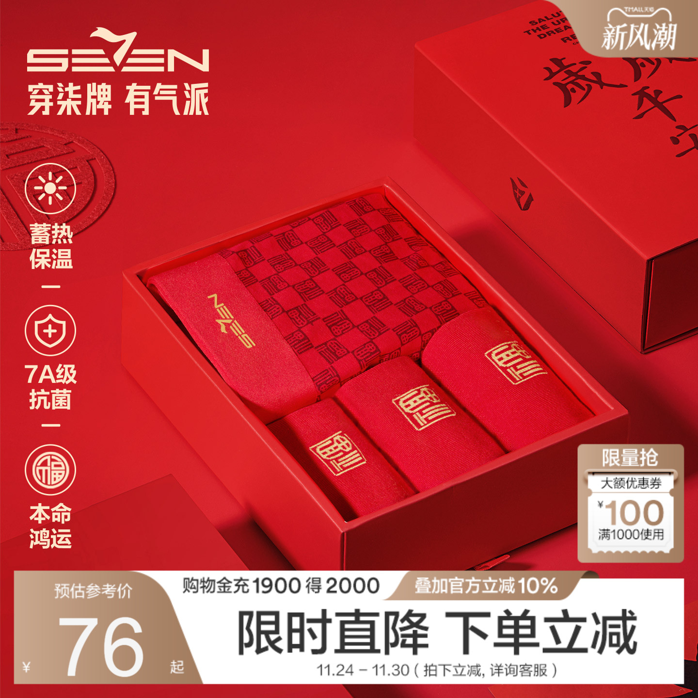 CarreKenbt礼盒装本命年男士内衣套装纯棉属马大红色内裤袜子男款