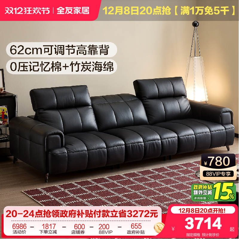 全友家居现代简约大黑牛真皮沙发2025新款客厅头层牛皮直排沙发